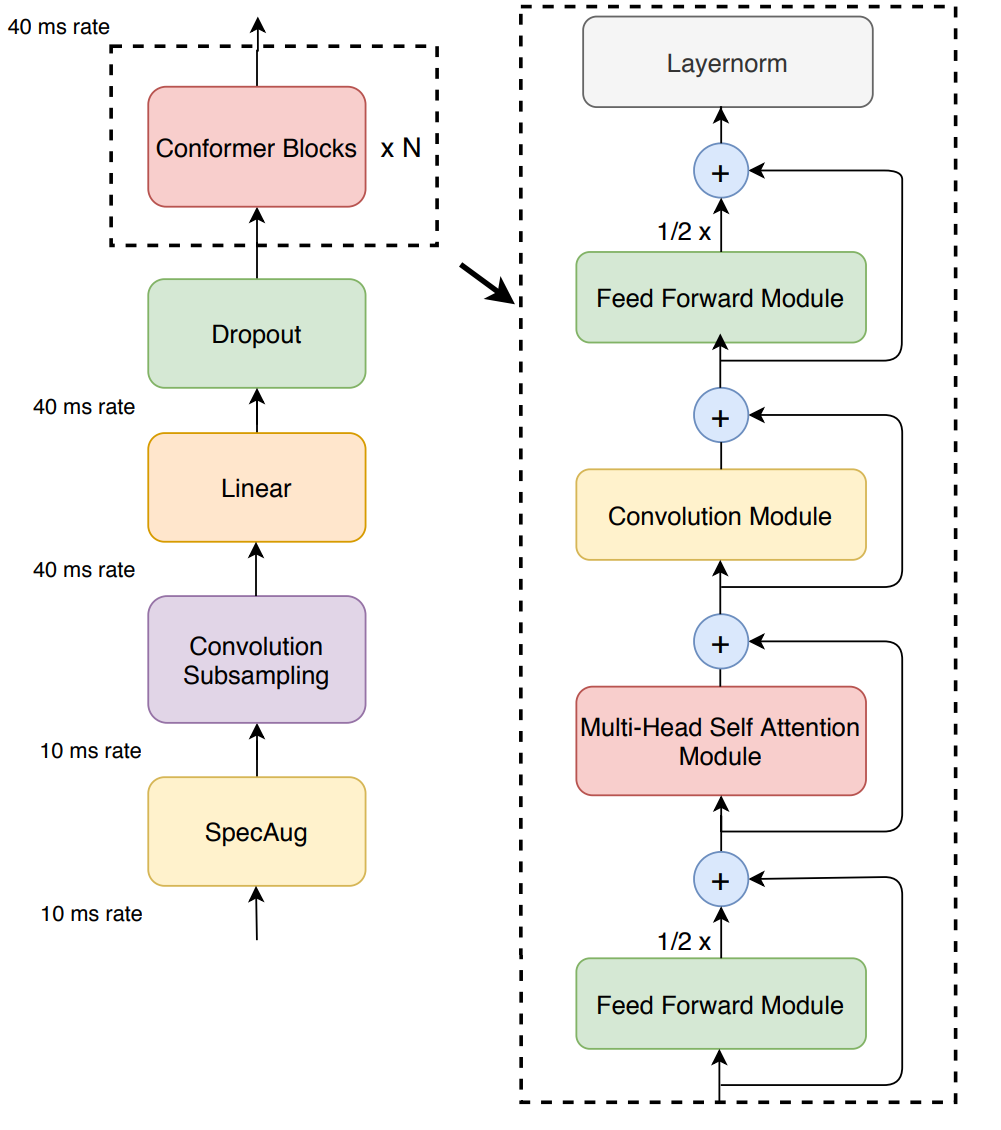 Here is the overall architecture of the encoder of Conformer-CTC: